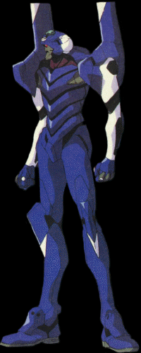 | 以「E計畫」為名而開發的EVA系列。根據美里的說法,EVA是以出現在南極的第一使徒為藍本所製造的;關於這個層面,就連負責E計畫的律子也有許多無法理解之處。它的基本駕馭(操縱)方式,勢將駕駛者的A^10神經和EVA的神經網路連結起來,然後以精神同步方式讓EVA啟動。駕駛者雖可用意念來控制EVA的行動,但是EVA有的時候也會不聽使喚而自行動作(主要是攻擊行動),這時候便稱為「暴走」。裝在各機體表面的拘束具,觀者都認為是EVA的裝甲,其實是用來約束EVA原本的力量。在拘束具之下,有一個被稱為「素體」的東西,有血有肉,給人生物般的印象,說它是人造的血肉之軀也毫不為過。此外,EVA系列非常接近人類的比例,但是基於 作為汎用人形決戰兵器的考量下有對敵作戰的必要性,因此也設計了多種武器。又,駕駛員是第三適格者,碇真嗣。 |